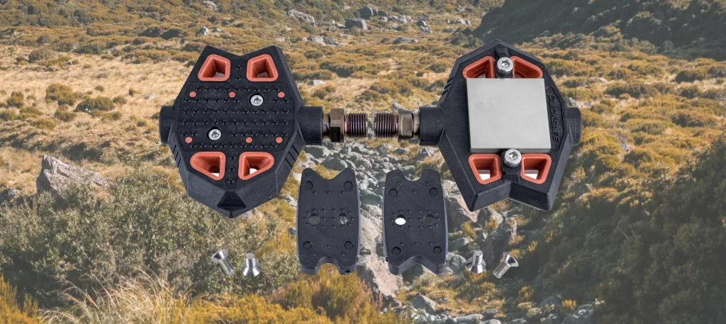 Les Pédales Shark sont composées de deux faces pour une polyvalence maximale. D’un côté, une face traditionnelle dotée de picots intégrés sur toute la surface assure une excellente adhérence, peu importe le type de chaussures utilisé. De l’autre, une face magnétique puissante compatible avec les cales SPD (fournies), offrant un maintien intuitif et sécurisé des chaussures.